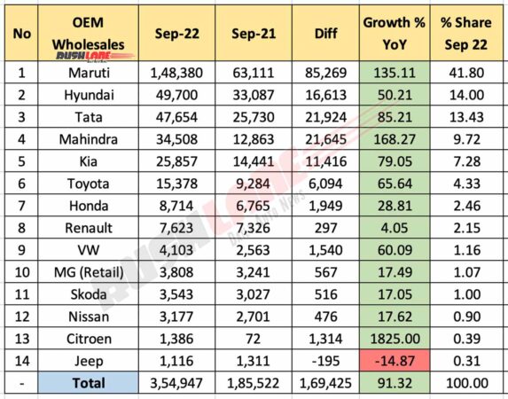 Car OEM Market Share Sep 2022
